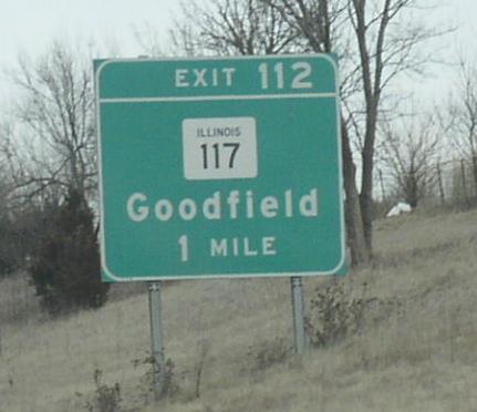 Illinois State Route 117 runs north-south through Woodford County. This connects much of northeastern Woodford County to I-74. IL St Rt 117 passes through the following towns. Goodfield