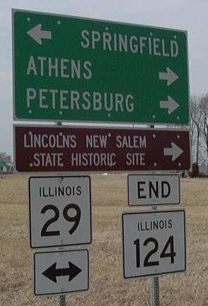 In October, 2003 IL St Rt 124 was pulled back to a junction with IL St Rt 123, nine miles north of Sherman. The former section is now part of IL St Rt 123. That highway was extended back into Sangamon County, near Athens, to Williamsville. IL St Rt 124 passes through the following town. Sherman