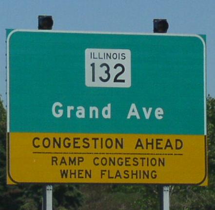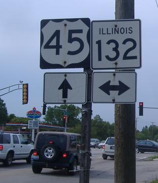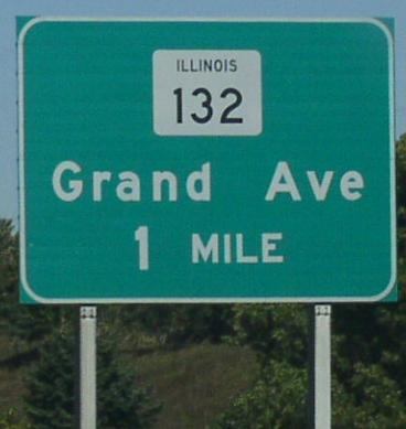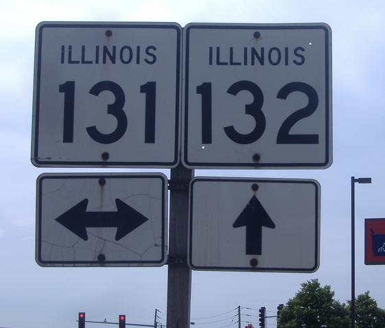 The eastern end of IL St Rt 132 at IL St Rt 131 in Gurnee. The eastern end marker. A BGS on SB U.S. Rt. 41. BGS on NB I-94. The exit at this interchange is a high traffic area. BGS on NB I-94. A junction marker on SB IL St Rt 59.