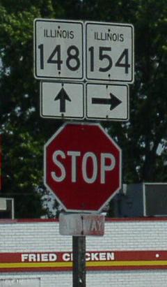 SB IL St Rt 148/WB IL St Rt 154 south of Sesser. WB IL St Rt 154 west of Rend Lake. A Franklin County mile marker. A BGS on NB I-57. The western end near Whittington. The western end marker.