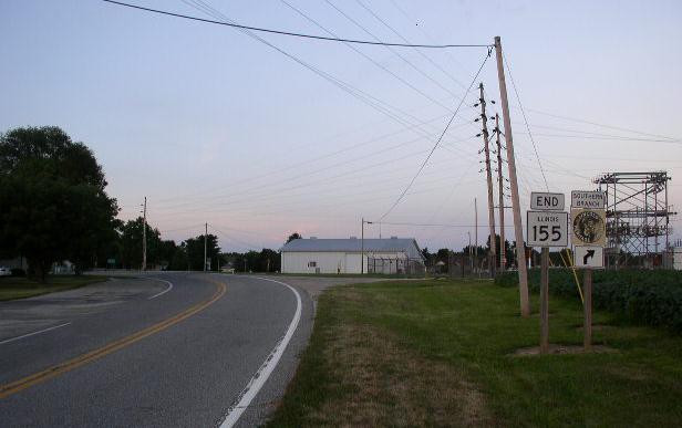 A junction marker on SB IL St Rt 3. The eastern end at Ruma. The eastern end marker. WB IL St Rt 155west of Ruma. A Randolph County mile marker. WB IL St Rt 155 near Ames. WB IL St Rt 155 near Prairie du Rocher. WB IL St Rt 155 in Prairie du Rocher. WB IL St Rt 155 at the flood gates near Prairie du Rocher. WB IL St Rt 155 at the other flood gates at Prairie du Rocher. WB IL St Rt 155 near Fort De Chartes. The western end of IL St Rt 155. The western end marker. The "0" mile marker.