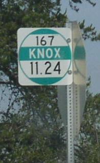 IL St Rt 167 is not multi-plexed in Knox County. IL St Rt 167 intersects the following highways in Knox County. Illinois State Route 180, near Victoria.