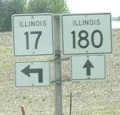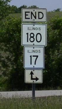 A junction sign on EB IL St Rt 17. A junction marker on WB IL St Rt 17. The northern end of IL St Rt 180. The northern end marker. SB IL St Rt 180 north of IL St Rt 167. A Knox County mile marker near U.S. Rt. 150. The southern end marker.