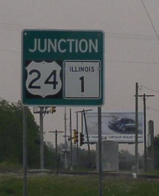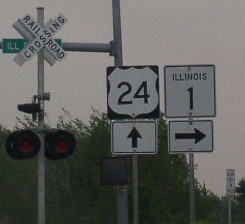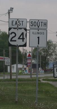 NB IL St Rt 1 near Papineau. NB IL St Rt 1 near Martinton. NB IL St Rt 1 near U.S. Rt. 52. EB U.S. Rt. 24/SB IL St Rt 1 at Watseka. A junction marker on EB U.S. Rt. 24/SB IL St Rt 1.