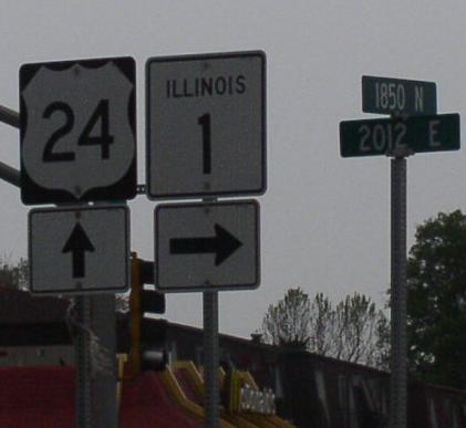 IL St Rt 1 intersects the following highways in Iroquois County. U.S. Rt. 24, near Watseka.