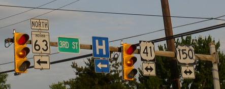 Indiana State Route 63 runs north-south in Central Vigo County. This is one of the main through highways in the Greater Terre Haute Area. IN St Rt 63 passes through the following towns in Vigo County. Terre Haute Prairieton Prairie Creek IN St Rt 63 is multi-plexed in Vigo County. U.S. Rt. 41, at Terre Haute. U.S. Rt. 150, at Terre Haute.