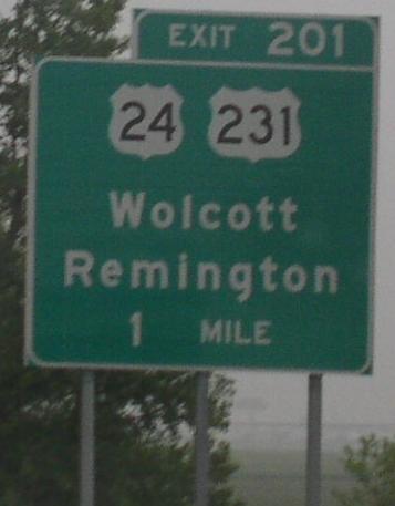 U.S. Federal Route 24 runs east-west across Southern Jasper County. U.S. Rt. 24 passes through the following town in Jasper County. Remmington U.S. Rt. 24 is multi-plexed in Jasper County. U.S. Rt. 231, near Remington. U.S. Rt. 24 intersects the following highways in Jasper County. U.S. Rt. 231, at Remington.