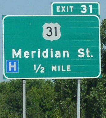 U.S. Federal Route 31 runs north-south in Western Hamilton County. This highway by-passes much of Carmel and Nobelsville. U.S. Rt. 31 passes through the following towns in Hamilton County. Carmel East Union U.S. Rt. 31 is multi-plexed in Hamilton County. Interstate 465, near Indianapolis. U.S. Rt. 52, near Indianapolis. U.S. Rt. 421, near Indianapolis. U.S. Rt. 31 intersects the following highways in Marion County. Interstate 465, near Indianapolis. U.S. Rt. 52, near Indianapolis. U.S. Rt. 421, near Indianapolis. Indiana State Route 431, at Carmel. Indiana State Route 32, near Westfield. Indiana State Route 38, near Deming.
