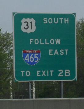BGS on WB I-465/NB U.S. Rt. 421. A guide BGS on SB U.S. Rt. 31.