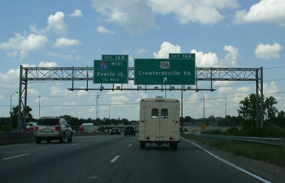 WB I-74/NB I-465 at the I-74/U.S. Rt. 136 interchange.