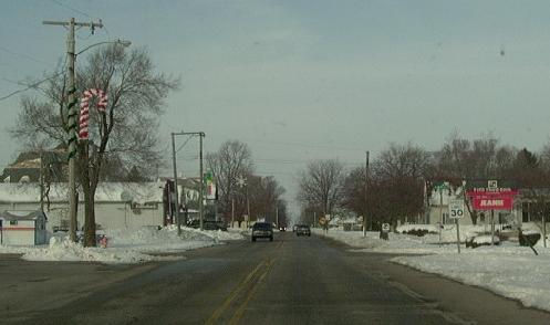 Looking north on BUSN. U.S. Rt. 52 in Fowler. A old guide marker in Fowler.