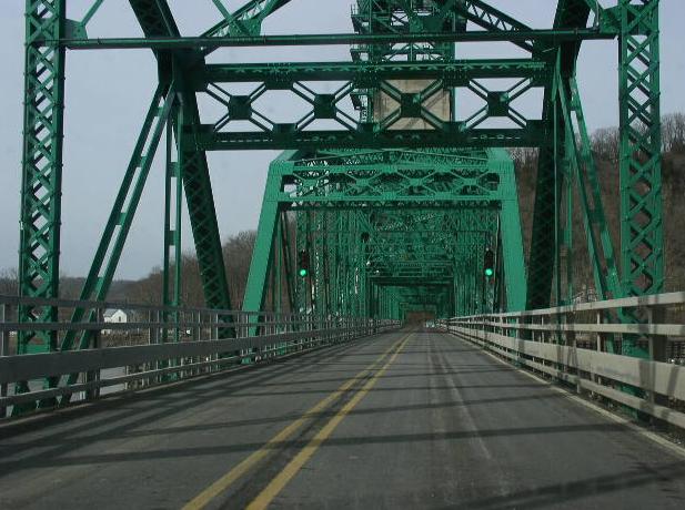 NB IL St Rt 100 on the eastern bank of the Illinois River. NB IL St Rt 100 on the eastern side of the bridge. NB IL St Rt 100 at the first gates fo the bridge. NB IL St Rt 100 near the draw tower on the Illinois River bridge. NB IL St Rt 100 at the draw section of the river bridge. NB IL St Rt 100 on the westside of the bridge. NB IL St Rt 100 at Hardin. NB IL St Rt 100 near Hardin. A Calhoun County mile marker. NB IL St Rt 100 south of Michael. NB IL St Rt 100 south of Kampsville. NB IL St Rt 100 at Kampsville. NB IL St Rt 100 north of Kampsville.