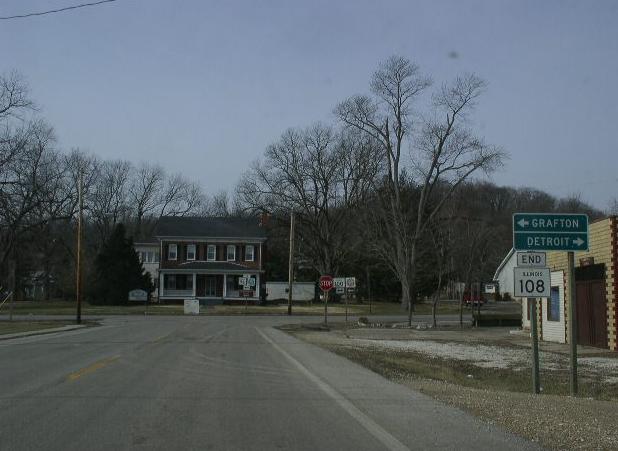 A junction marker on NB IL St Rt 100. The western end of IL St Rt 108. The western end marker.
