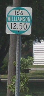 A junction marker on EB IL St Rt 13. A Williamson County mile marker. The northern end of IL St Rt 166 at IL St Rt 13, near Pittsburg. The northern end marker.