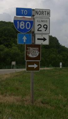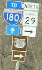 A Bureau County mile marker on IL St Rt 29 at the Bureau/Putnam County Line. NB IL St Rt 29 north of the Bureau/Putnam County Line. IL St Rt 29 turns right at this corner. To the north (left) is a expressway spur ramp to Interstate 180. A sign assembley at the intersection above. (April, 2003) The same guide markers as above. (July, 2004) A set of guide markers SB on the spur from I-180. A BGS on SB I-180. A junction marker on SB IL St Rt 26/29. SB IL St Rt 26/29 near Bureau Junction. NB IL St Rt 29 at U.S. Rt. 6/IL St Rt 89 near Spring Valley. The northern end marker.