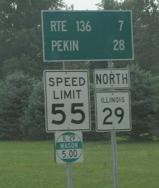 WB U.S. Rt. 136/SB IL St Rt 29 west of San Jose. NB IL St Rt 29 near Mason City. A Mason County mile marker. A junction marker on EB IL St Rt 10. NB IL St Rt 29 near IL St Rt 10. SB IL St Rt 29 near the Mason/Menard County Line.