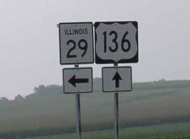 IL St Rt 29 is multi-plexed in Mason County. U.S. Rt. 136, near San Jose.