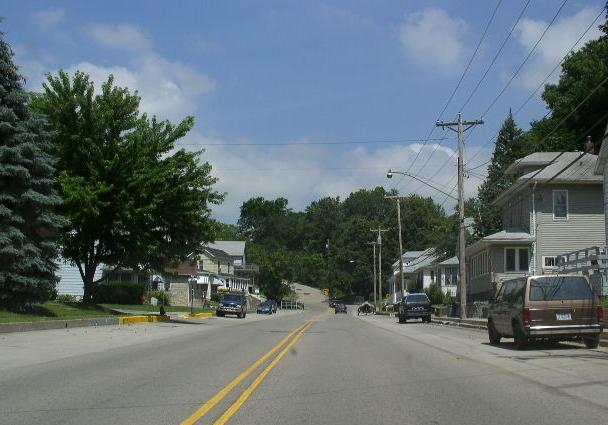 The first guide sign on NB IL St Rt 35. NB IL St Rt 35 in East Dubuque. A Jo Daviess County mile marker.