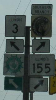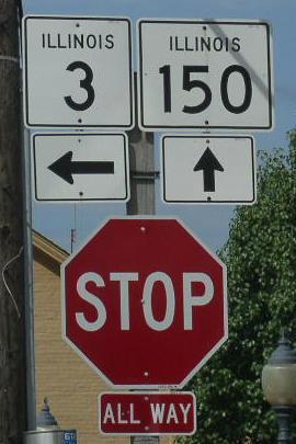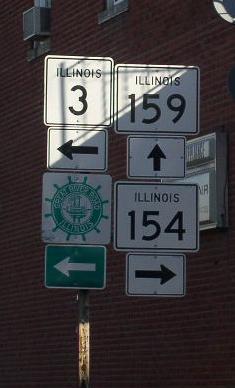 A Randolph County mile marker. A junction marker on SB IL St Rt 159. A junction marker on WB IL St Rt 154. SB IL St Rt 3 south of Red Bud. SB IL St Rt 3 near Ruma. SB IL St Rt 3 north of Evansville. SB IL St Rt 3 near Ellis Grove. A juntcion marker on the route to Fort Kaskaskia. NB IL St Rt 3 in Chester. A set of junction markers in Chester.