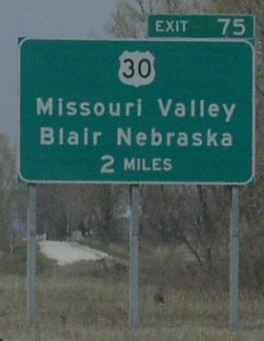 U.S. Federal Route 30 is the main east-west highway across Harrison County. This runs along the Boyer River. U.S. Rt. 30 passes thorugh the following towns in Harrison County. Dunlap Wodbine Logan Missouri Valley U.S. Rt. 30 is not multi-plexed in Harrison County. U.S. Rt. 30 intersects the following highways in Harrison County. Iowa State Route 37, at Dunlap. Iowa State Route 44, near Logan. Iowa State Route 127, at Logan. Interstate 29, near Missouri Valley.