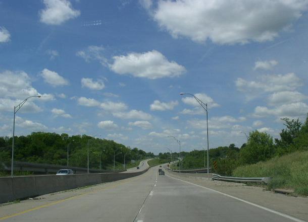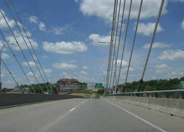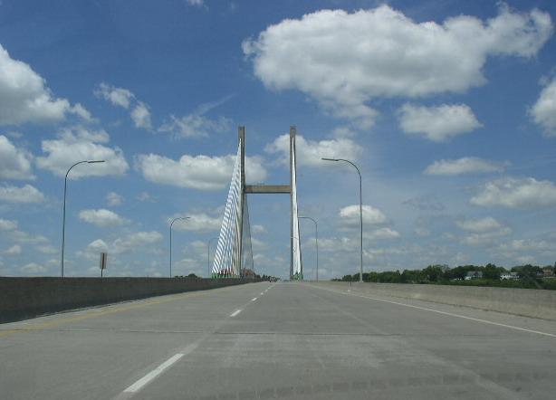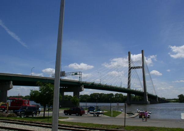 WB U.S. Rt. 34 at the Illinois/Iowa State Line. WB U.S. Rt. 34 crossing the Mississippi River. The U.S. Rt. 34 bridge over the Mississippi River. Photo taken from the Iowa side. WB U.S. Rt. 34 in Burlington.