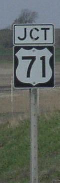 U.S. Federal Route 71 is the main north-south highway in Central Audubon County. This connects Hamlin to Interstate 80. U.S. Rt. 71 passes through the following towns in Audubon County. Brayton Exira Hamlin Audubon U.S. Rt. 71 is not multi-plexed in Audubon County. U.S. Rt. 71 intersects the following highway in Audubon County. Iowa State Route 44, at Hamlin.
