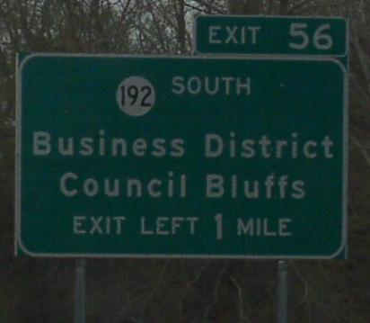 Iowa State Route 192 is a north-south highway in Council Bluffs. This highway runs from Interstate 29, south to Interstate 29/80, via the city's business district. IA St Rt 192 passes thorugh the following town in Pottawattamie County. Council Bluffs IA St Rt 192 is multi-plexed in Pottawattamie County. U.S. Rt. 6, at Council Bluffs.