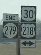 Iowa State Route 279 was a short route connecting the village of Atkins to U.S. Rt. 30/218. On July 1st, 2003, the Iowa Department of transportation transfered jurisdiction of this highway to Benton County. IA St Rt 279 passes through the following town in Benton County. Atkins. IA St Rt 279 is not multi-plexed in Benton County. IA St Rt 279 intersects the following highways in Benton County. U.S. Rt. 30, near Atkins. U.S. Rt. 218, near Atkins.
