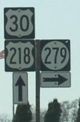 Junction sign on WB U.S. Rt. 30/218. Southern end marker.