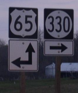 A SB guide marker. SB IA St Rt 330 near U.S. Rt. 65/IA St Rt 117. A junction marker on NB IA St Rt 117. A guide marker on NB IA St Rt 117. The southern end marker.