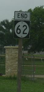 A junction marker on EB IA St Rt 64. SB IA St Rt 62 at IA St Rt 64. The southern end marker.