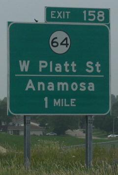 A BGS on NB U.S. Rt. 61. EB IA St Rt 64 in Marquoketa. WB IA St Rt 64 in Downtown Marquoketa. A junction marker on SB IA St Rt 62. SB U.S. Rt. 67/WB IA St Rt 64 near Sabula. The Iowa Welcome Sign on NB U.S. Rt. 52/WB IA St Rt 64. SB U.S. Rt. 52/EB IA St Rt 64 at the Mississippi River Bridge. SB U.S. Rt. 52/EB IA St Rt 64 at the main truss. SB U.S. Rt. 52/EB IA St Rt 64 crossing the Mississippi River. EB U.S. Rt. 52/EB IA St Rt 64 near the Illinois side.