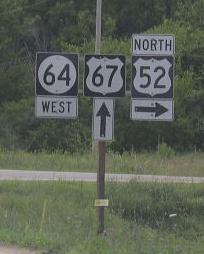 IA St Rt 64 is multi-plexed in Jackson County. U.S. Rt. 67, near Sabula.