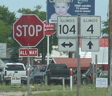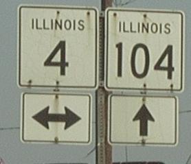 IL St Rt 4 is not multi-plexed in Sangamon County. IL St Rt 4 intersects the following highways in Sangamon County. Illinois State Route 104, at Auburn.