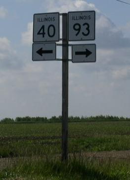 The eastern end of IL St Rt 93 at IL St Rt 40. The eastern end marker. WB IL St Rt 93 west of IL St Rt 40. WB IL St Rt 93 near Osceola. WB IL St Rt 93 east of Elmira. The western end of IL St Rt 93. Western end marker.