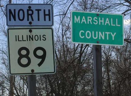 Illinois State Route 89 runs north-south in Marshall County. It cuts through the central portion of the county. IL St Rt 89 passes through the following towns in Marshall County La Rose