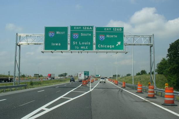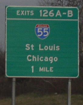 A BGS for SB I-55 on EB I-80. (October, 2006)