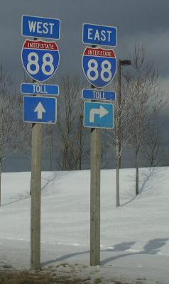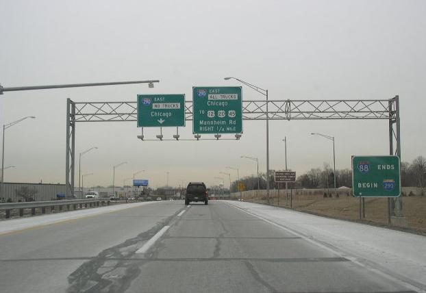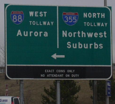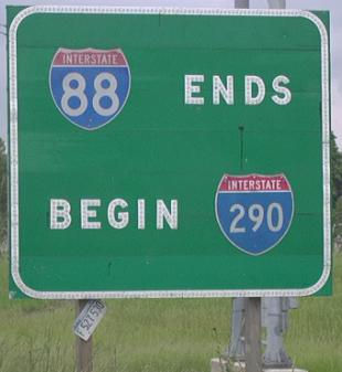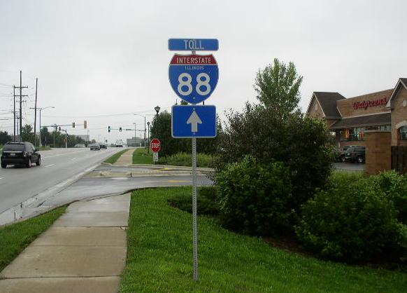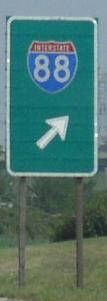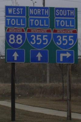 Du Page/Kane County Line to I-290/294 A junction marker in Naperville. A set of guide markers in Naperville. EB I-88 in Naperville. A guide sign on Warrenville Road north of I-88. This is a very rare sign. (September, 2006) EB I-88 near IL St Rt 53. A milage chart on NB I-355. (Nov., 2007) A set of junction markers on EB U.S. Rt. 34. A set of guide markers on EB U.S. Rt. 34. A BGS guide sign on WB U.S. Rt. 34. Sign at the gore point on NB I-355. Ramp toll plaza info sign for Midwest Road in Oak Brook. These signs are all along the East-West Tollway. EB I-88 at Midwest Road in Oak Brook. EB I-88 leaving the York Road Toll Plaza in Oakbrook, near the South I-294 exit. EB I-88 splits into two spurs at York Road. One goes to SB I-294 (right) the other to EB I-290/NB I-294 (left). EB I-88 at the end marker of the Reagan Tollway. The eastern end of I-88 in Hillside. The eastern end marker on EB I-88. Continue... Lee/Whiteside County Line to Du Page/Kane County Line