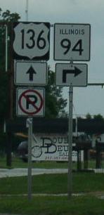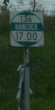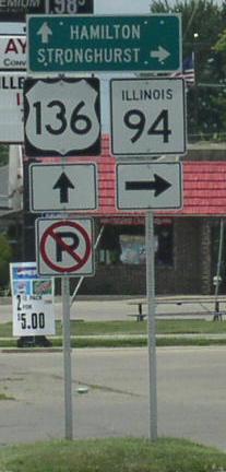 WB U.S. Rt. 136/NB IL St Rt 94 in Carthage. A Hancock County mile marker. EB U.S. Rt. 136 west of the La Moine River. EB U.S. Rt. 136 near the La Moine River. EB U.S. Rt. 136 east of the La Monie River. EB U.S. Rt. 136 near the Hancock/Mc Donough County Line.