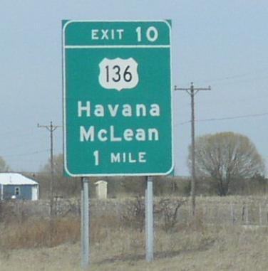 WB U.S. Rt. 136 east of San Jose. What makes this marker unique, is the fact that the "US" is placed on it. All the rest just state, "136". WB U.S. Rt. 136 west of I-155. A BGS on NB I-155. Another Logan County marker. WB U.S. Rt. 136 east of I-155. A rural street marker on U.S. Rt. 136 at LCH 25. EB U.S. Rt. 136 north of Atlanta. EB U.S. Rt. 136 at the Mc Lean/Logan County line.