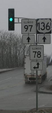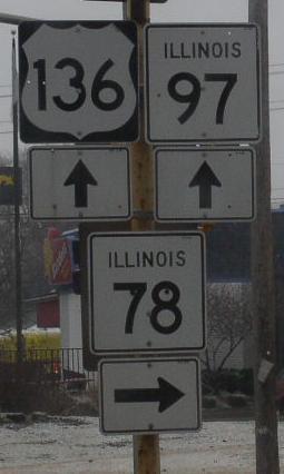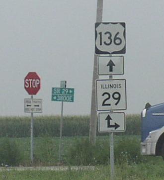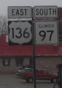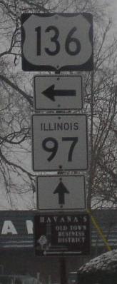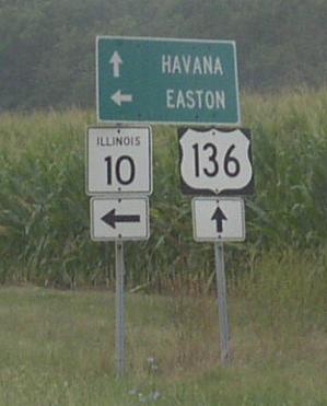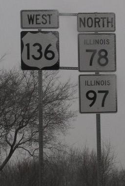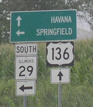 WB U.S. Rt. 136 at the Logan/Mason County Line. WB U.S. Rt. 136 west of San Jose. WB U.S. Rt. 136/SB IL St Rt 29 near San Jose. WB U.S. Rt. 136 near Forest City. WB U.S. Rt. 136 near IL St Rt 10. WB U.S. Rt. 136/NB IL St Rt 97 in Havana. WB U.S. Rt. 136; NB IL St Rt 78/97 near the Illinois River. WB U.S. Rt. 136; NB IL St Rt 78/97 crossing the Illinois River.