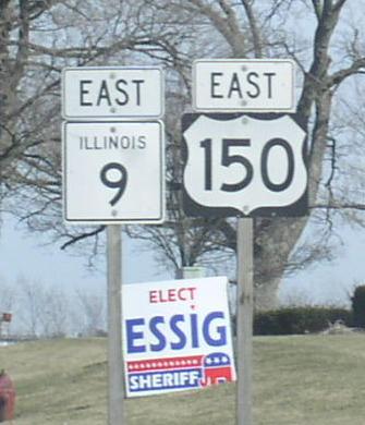 U.S. Rt. 150 is multi-plexed in Mc Lean County. Illinois State Route 9, through Bloomington.