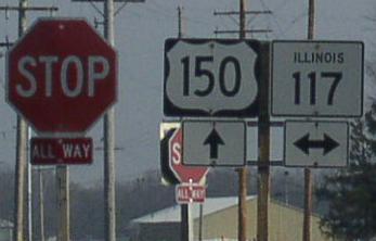 U.S. Rt. 150 is not multi-plexed in Woodford County. U.S. Rt. 150 crosses the following highways in Woodford County. Interstate 74, near Deer Creek. (NO INTERCHANGE) Illinois State Route 117, at Goodfield.