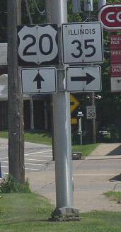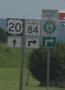 EB U.S. Rt. 20 crossing the Mississippi River. The Illinois Welcome Sign on EB U.S. Rt. 20 at East Dubuque. EB U.S. Rt. 20/SB IL St Rt 84 near Galena. EB U.S. Rt. 20/SB IL St Rt 84 in Galena. A Jo Daviess County mile marker. EB U.S. Rt. 20/SB IL St Rt 84 near Lake Galena. EB U.S. Rt. 20/SB IL St Rt 84 near Elizabeth. A junction marker on EB U.S. Rt. 20/SB IL St Rt 84.