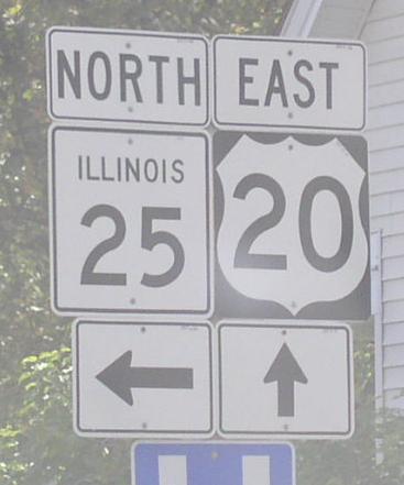 WB U.S. Rt. 20 on the Truck By-Pass in Elgin. West end of the U.S. Rt. 20 Truck By-Pass at Elgin. A junction marker on SB IL St Rt 47. A set of guild markers on WB U.S. Rt. 20/NB IL St Rt 47/EB IL St Rt 72. A set of guild markers on EB U.S. Rt. 20/SB IL St Rt 47/WB IL St Rt 72. A BGS on WB I-90.