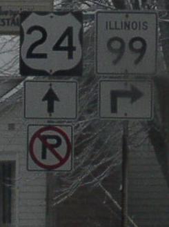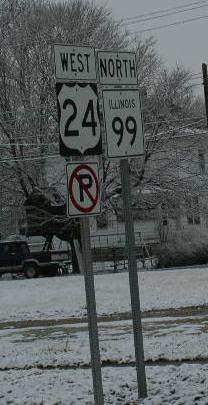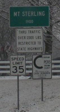 WB U.S. Rt. 24 at the Brown/Schuyler County Line. WB U.S. Rt. 24 near Cooperstown. A Brown County mile marker. WB U.S. Rt. 24/SB IL St Rt 99 in Mt. Sterling.