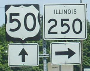 U.S. Rt. 50 intersects the following highways in Lawrence County. Illinois State Route 250, near Sumner.
