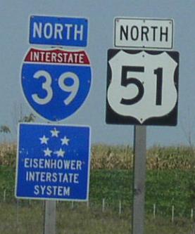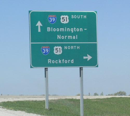 U.S. Federal Route 51 runs north-south across Mc Lean County. This is one of the counties that U.S. Rt. 51 has a spur in. Around Bloomington and north of Normal, U.S. Rt. 51 is on interstate standard highway. South of Bloomington, the route is slowly being upgraded to interstate standards in hopes that Interstate 39 will be extended southward. U.S. Rt. 51 passes through the following towns in Mc Lean County. Normal