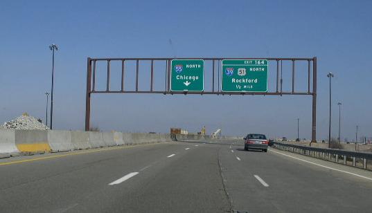 Interstate 55, from Interstate 39 in Normal to Veterans Parkway in Bloomington.
