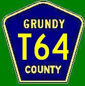 Grundy County Highway T64 is a north-south highway in the southwestern portion of the county. GCH T64 passes through the following town in Grundy County. Kinsman GCH T64 passes through the following townships in Grundy County. Highland Vienna GCH T64 intersects the following highways in Grundy County. Grundy County Highway C52, near Kinsman. Grundy County Highway C49, near Kinsman. Grundy County Highway C49, near Kinsman. Grundy County Highway C41, near Kinsman. GCH T64 is multi-plexed in Grundy County. Grundy County Highway C49, near Kinsman.